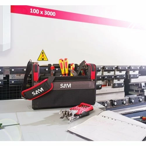 Cette boîte à outils de Sam Outillage est dotée d’un tissu à haute résistance et étanche aux projections de liquide. Elle a un porte-outils intérieur amovible, des poches, des mini-poches, des sangles élastiques et des compartiments à l’intérieur et à l’extérieur du sac pour contenir une variété d’outils. De plus, la caisse est plus confortable à utiliser grâce à la poignée antidérapante douce et aux bandoulière rembourrées réglables et amovibles.