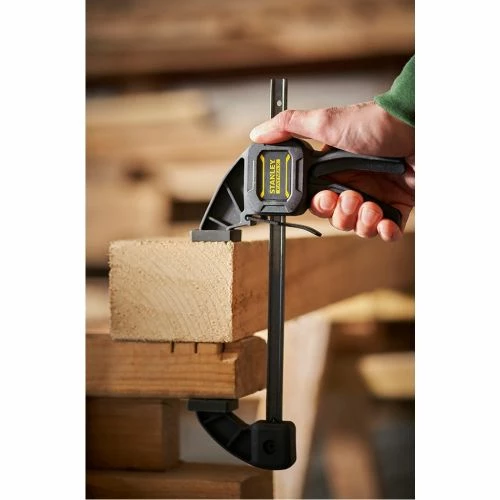 Ce serre-joint M moyenne puissance FATMAX® de Stanley est doté d’une puissance de serrage de 63 kg/m² (contre 45 kg/m² pour les anciens modèles). Il peut se transformer en écarteur grâce au système à vis. Muni d’un rail en acier et d’un corps en nylon renforcé, ce serre-joint est équipé d’une gâchette de desserrage en acier. Il possède des poignées ergonomiques dessinées pour une utilisation optimale en une main et permet d’appliquer une grande force. Ce Serre-joint M moyenne puissance Fatmax® bénéficie d’une rainure en V croisée dessinée sur le patin pour maintenir les tubes et les pièces rondes. Ses larges patins de protection amovibles permettent de ne pas marquer les zones de travail.